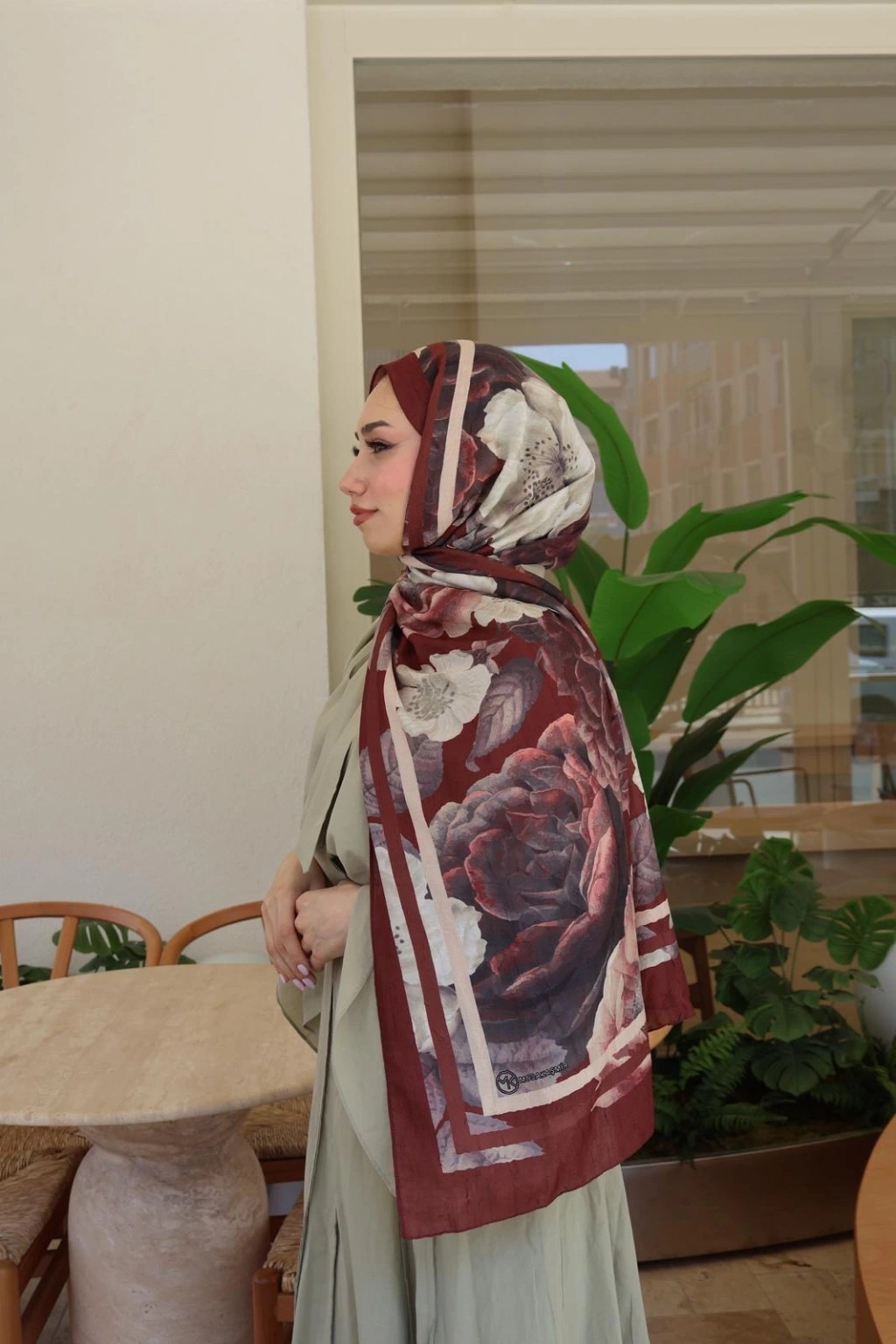 ETNİK DESENLİ YEŞİL-BORDO ŞAL